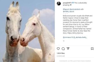 रणबीर कपूर (Ranbir Kapoor) और आलिया भट्ट (Alia Bhatt) के जानवरों के इस लगाव के बारे में जानने के बाद एक एनिमल वेलफेयर एनजीओ ‘एनिमल राहत’ (NGO Animal Rahat) ने 2 अलग-अलग घोड़ों का नाम ‘रणबीर और आलिया’ रखा है. एनजीओ के इस प्यारे से कदम का दुल्हन की बहन पूजा भट्ट (Pooja Bhatt) ने स्वागत किया है.
