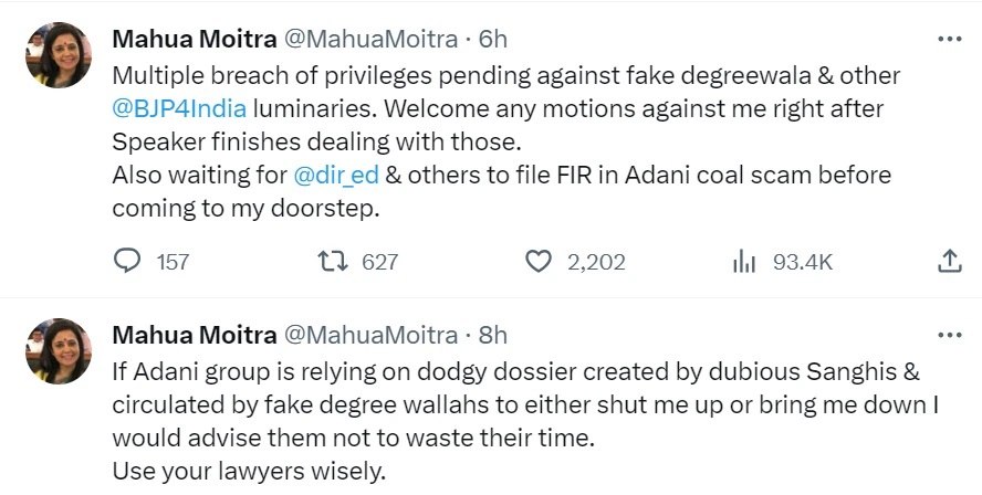 इस मामले में टीएमसी सांसद महुआ मोइत्रा ने तंज कसते हुए कहा, ‘एक कॉलेज/विश्वविद्यालय खरीदने के लिए अपनी गलत कमाई और उपहारों का उपयोग कर रही हूं. ताकि ‘डिग्री दुबे’ एक असली डिग्री खरीद सकें’. लोकसभा स्पीकर कृपया झूठे हलफनामे के लिए उनके खिलाफ जांच पूरी करें. फिर मेरी जांच के लिए कमेटी गठित करें.