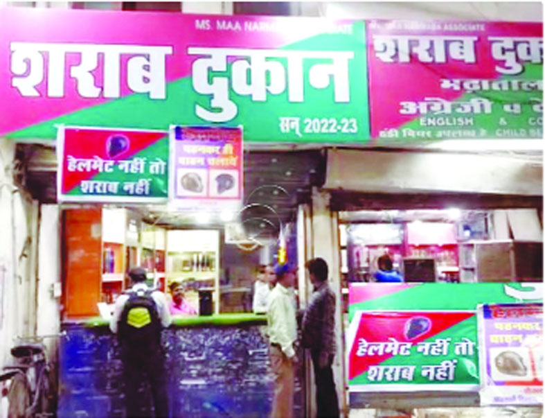जबलपुर। वाहन चलाते समय हेलमेट पहनना अनिवार्य है। ट्रैफिक पुलिस के स्लोगन को आबकारी विभाग भी आगे बढ़ा रही है। जबलपुर के शराब विक्रेताओं ने निर्णय दिया है कि जो भी व्यक्ति हेलमेट नहीं लगाएगा, उसे शराब नहीं दी जाएगी। जबलपुर शहर की अधिकतर शराब दुकानों के बाहर पोस्टर लगाए गए हैं, जिसमें लिखा है कि हेलमेट नहीं तो शराब नहीं वही शराब दुकानों लगे पोस्टर के माध्यम से यह भी बताया गया है कि हेलमेट पहनना अनिवार्य है, जो व्यक्ति हेलमेट नहीं पहनेगा, उसे शराब नहीं दी जाएगी। शराब दुकानों के इस निर्णय के बाद अब शराब के शौकीन हेलमेट लगाकर शराब खरीदने दुकान पहुंच रहे हैं।