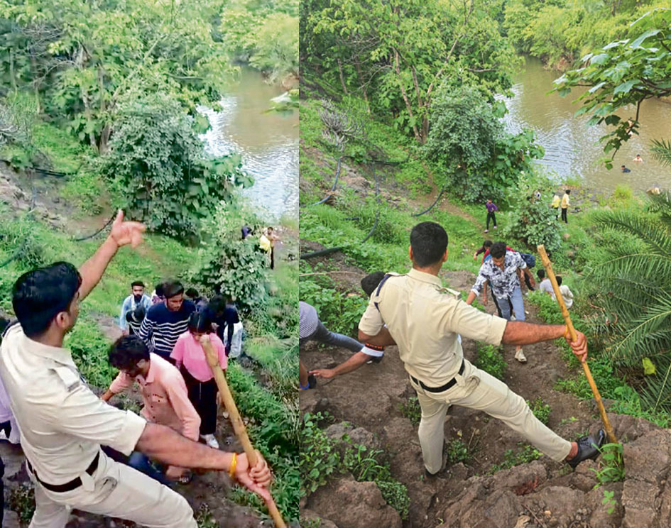 • MP : चेतावनी से भी नहीं मान रहे युवा, हाथ पकडक़र खाई से ऊपर ला रही पुलिस