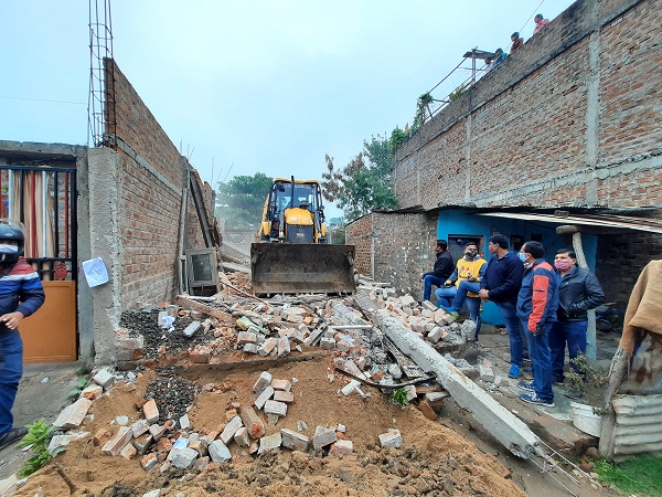 इन्दौर। आज सुबह-सुबह निगम की टीम ने बाणगंगा के रामनगर में एक कुख्यात गुंडे के मकान पर धावा बोला। वहां बनाए जा रहे निर्माणाधीन मकान को ढहाने की कार्रवाई की गई। करीब पांच सौ स्क्वेयर फीट के मकान में निर्माण कार्य चल रहा था। कार्रवाई को लेकर महिलाओं ने खूब हंगामा भी किया, लेकिन अधिकारियों ने उन्हें एक तरफ कर मकान ढहा दिया। मकान तोडऩे के लिए जेसीबी को पतली गलियों से गुजरना पड़ा।