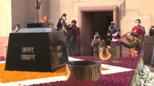 नई दिल्ली । इंडिया गेट (India Gate) पर स्थित अमर जवान ज्योति (Amar Jawan Jyoti) का आज नेशनल वॉर मेमोरियल (National War Memorial) की ज्योति के साथ विलय कर दिया गया (Merged) । अब ज्योति यहीं जलेगी (Now Jyoti will Burn Here) । भारत ने पाकिस्तान के साथ 1971 के युद्ध के 50 साल पूरे होने के मौके पर अब इस अमर जवान ज्योति को राष्ट्रीय युद्ध स्मारक पर शिफ्ट करने का फैसला किया गया है ।