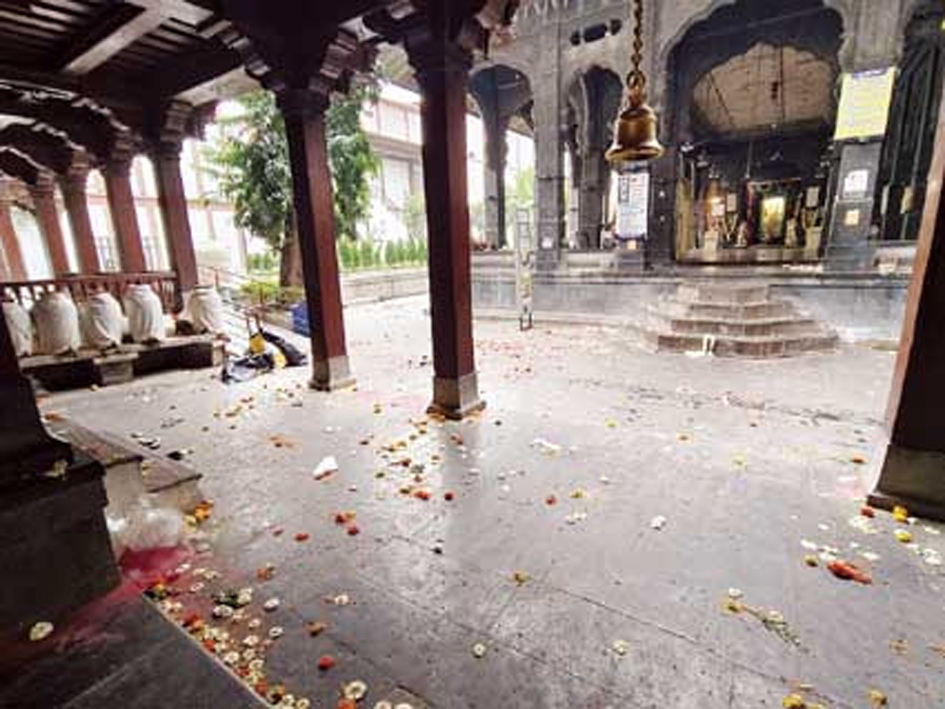गर्भगृह के सामने गंदगी के कारण नहीं हो पाई सुबह की आरती