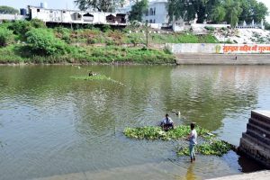 उज्जैन। पिछले महीने में दो बार पर्व स्नान के लिए शिप्रा में नर्मदा का साफ पानी छोड़ा जा चुका है। बावजूद इसके कल होने जा रहे माघी पूर्णिमा के स्नान के पहले नदी का पूरा पानी नालों के कारण काला पड़ चुका है। अभी यह समस्या आ रही है और गर्मी में पूरी शिप्रा को जलकुंभी घेर लेगी। मंगलनाथ क्षेत्र में अभी से जलकुंभी का जमना शुरू हो गया है। उल्लेखनीय है कि शिप्रा नदी में हर साल बारिश निपटते ही जलकुंभी का जमावड़ा शुरू हो जाता है। सितंबर माह में बारिश का काल पूरा होता है और अक्टूबर-नवंबर माह से ही बड़े पुल के आगे चक्रतीर्थ से होते हुए ऋणमुक्तेश्वर घाट तक गंदगी और जलकुंभी जमा होने लग जाती है। उधर गंगाघाट के आगे से लेकर मंगलनाथ घाट तक नदी का तल जलकुंभी से पटा नजर आता है। यह एरिया ऐसा है जो अक्टूबर से लेकर जून-जुलाई तक लगभग 9 महीने जलकुंभी के साम्राज्य से ढंका हुआ रहता है। हालात यह है कि मंगलनाथ क्षेत्र में श्रद्धालु स्नान तो दूर आचमन तक नहीं कर पाते हैं।