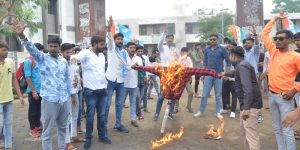 सीहोर। पीजी कॉलेज के बाहर एनएसयूआई द्वारा एनएसयूआई जिलाध्यक्ष देवेंद्र ठाकुर की उपस्थिति में पूर्व एनएसयूआई नगर अध्यक्ष हरिओम सिसोदिया के नेतृत्व में एबीवीपी का पुतला जलाया गया। जानकारी देते हुए एनएसयूआई जिला अध्यक्ष देवेंद्र सिंह ठाकुर ने बताया कि जयनारायण व्यास विश्वविद्यालय जोधपुर राजस्थान में नाबालिग दलित बालिका के साथ गैंगरेप करने वाले एबीवीपी के तीनों कार्यकर्ताओं को फांसी देने की मांग को लेकर अखिल भारतीय विद्यार्थी परिषद का पुतला दहन किया गया है। श्री ठाकुर ने बताया कि अखिल भारतीय विद्यार्थी परिषद अपने आप को छात्र हितेषी संगठन कहता है और उनके कार्यों को देखा जाए तो छात्राओं के साथ छात्र हितेषी कार्य करने की जगह पर गैंगरेप जैसी अप्रिय घटना को अंजाम दे रहे हैं। एनएसयूआई ने मांग की है कि तीनों छात्रों को फांसी दी जाए और ऐसे छात्र संगठन को बर्खास्त किया जाए।