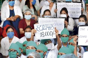 हड़ताल (Strike) में लगभग 1 हजार नर्सें शामिल हैं, जिससे अस्पतालों (Hospitals) की व्यवस्था चरमरा गई है। अस्पताल में कैजुअल्टी, ऑपरेशन थिएटर, गायनिक विभाग व ब्लैक फंगस के मरीजों को भी अब परेशानी शुरू हो गई है। एमवाय अस्पताल में सुबह से मरीज इलाज के लिए भटकते रहे। उन्हें अटेंड करने के लिए कोई नर्स नहीं थी, जिसके कारण परिजनों को ही दौड़-भाग करना पड़ी। आज भोपाल में मंत्री विश्वास सारंग और एसो. की प्रदेश अध्यक्ष रेखा परमार की मुलाकात होना है, जिसके बाद हड़ताल (Strike) की दिशा तय होगी। नर्सों की कई मांगें सालों से लंबित हैं, जिनमें अन्य राज्यों की तरह मप्र में उच्चस्तरीय वेतनमान, पुरानी पेंशन योजना को लागू किए जाने, कोविड के दौरान शहीद हुए नर्सिंग स्टाफ के स्वजन को अनुकंपा नियुक्ति देने के साथ 15 अगस्त को राष्ट्रीय कोरोना योद्धा अवार्ड से सम्मानित किए जाने की मांग भी है। इसके अलावा नर्सिंग स्टाफ (Nursing Staff) के लिए वर्षों से लंबित पदोन्नति की प्रक्रिया को शुरू करने और मेल नर्स की भर्ती किए जाने की मांग भी की गई है।