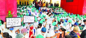 इन्दौर। अपनी 12 सूत्रीय मांगों (Demands) को लेकर आज से नर्सेस एसोसिएशन (Nurses Association) आज से अनिश्चितकालीन हड़ताल (Indefinite Strike) कर रहा है। एमवाय गेट पर नर्स ने अपनी मांगों की तख्तीयां लेकर प्रदर्शन कर रही है। वर्षों से लंबित मांगों के लेकर नर्सेस एसोसिएसन (Nurses Association) ने मध्यप्रदेश (Madhya Pradesh) में पूर्व में विरोध सप्ताह मनाया था, इसके बाद 28 जून को सामूहिक हड़ताल पर जाकर अपना अपनी मांगे नहीं मानने पर विरोध प्रदर्शन किया था। इसके बाद भी मांगे नहीं मानने पर आज से अनिश्चितकालीन हड़ताल पर जाने का फैसला किया है। जिला अध्यक्ष धर्मेंद्र पाठक ने बताया कि आज हमारे पास और कोई विकल्प नहीं बचा है। हम सालों से अपनी मांगों के लिए संघर्ष कर रहे है, लेकिन हमसे अब तक कोई बात नहीं करने आया है। हड़ताल से एमवाय अस्पताल (MY Hospital) की व्यवस्था चरमरा गई है। इस हड़ताल में अन्य संगठनों का समर्थन नहीं मिला है।