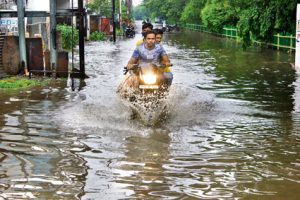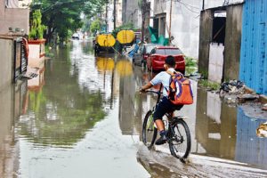 शहर की गलियां पानी में डूबी