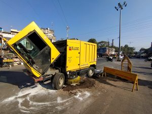 निगम की स्वीपिंग मशीन का टैंक फूटा