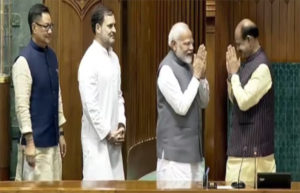 ओम बिरला के लोकसभा अध्यक्ष चुने जाने के बाद पीएम मोदी ने कहा कि हमारा विश्वास है कि आप आने वाले पांच साल तक हम सभी का मार्गदर्शन करते रहेंगे. बता दें कि प्रधानमंत्री नरेन्द्र मोदी ने अध्यक्ष पद के लिए ओम बिरला के नाम का प्रस्ताव रखा था, जिसका रक्षा मंत्री राजनाथ सिंह ने अनुमोदन किया. इस प्रस्ताव को प्रोटेम स्पीकर (कार्यवाहक अध्यक्ष) भर्तृहरि महताब ने सदन में मतदान के लिए रखा और इसे सदन ने ध्वनिमत से मंजूरी दे दी. इसके बाद कार्यवाहक अध्यक्ष महताब ने बिरला को लोकसभा अध्यक्ष चुने जाने की घोषणा की. पीएम मोदी और नेता प्रतिपक्ष राहुल गांधी और संसदीय कार्य मंत्री किरेन रीजीजू बिरला को अध्यक्षीय आसन तक लेकर गए. जब बिरला ने अध्यक्षीय आसन ग्रहण किया तो मोदी, राहुल गांधी और रीजीजू ने उन्हें बधाई और शुभकामना दी.
