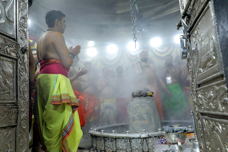 उज्जैन। महाशिवरात्रि के अवसर पर कल नगर के प्रमुख शिव मंदिरों सहित अन्य शिवालयों में दिनभर श्रद्धालुओं की भीड़ लगी रही और भक्तों ने भोलेनाथ के दूल्हा स्वरूप को निहारा। दर्शनों का सिलसिला देर शाम तक चलता रहा। शिवरात्रि पर्व के चलते शहर में जगह-जगह फलाहारी खिचड़ी का प्रसाद वितरित किया गया। शिप्रा तट पर भर्तृहरि गुफा के पास स्थित प्राचीन ऋणमुक्तेश्वर महादेव मंदिर पर शनिवार को महाशिवरात्रि पर्व योगी पीर महंत रामनाथ महाराज की उपस्थिति में अभिषेक-पूजन व भंडारे के साथ मनाया गया। मंदिर के महंत महावीरनाथ महाराज ने बताया कि सुबह 5 बजे से मंदिर में आम लोगों के दर्शन का सिलसिला शुरू हुआ और रात 12 बजे तक दर्शन खुले रहे। सुबह 11 बजे से फलाहारी खिचड़ी, खीर प्रसादी का वितरण किया गया व श्रद्धालुओं के लिए भोजन प्रसाद की भंडारा में व्यवस्था रखी गई। इसी तरह शिप्रा किनारे स्थित अंगारेश्वर महादेव मंदिर पर शनिवार को सेहरा शृंगार किया गया। सुबह से रात तक मंदिर प्रांगण में डेढ़ हजार दूध की फलाहारी खीर प्रसादी के रूप में वितरित की गई। शाम 5 बजे भगवान की महाआरती की गई और रात तक मंदिर में दर्शन के लिए भक्तों का तांता लगा रहा। मंदिर के पुजारी मनीष अर्जुन उपाध्याय, पं. रोहित उपाध्याय ने जानकारी देते हुए बताया सुबह 8 से दोपहर में 2 बजे तक सामान्य दर्शन हुए। महाशिवरात्रि पर्व के चलते मंदिर में दिनभर पंचामृत, अभिषेक, भात पूजन आदि सब बंद रखे गए।