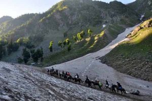 श्रीनगर । दक्षिण कश्मीर के पहलगाम में (In Pahalgam South Kashmir) रविवार को अमरनाथ गुफा मंदिर मार्ग पर (On Amarnath Cave Shrine Route) पहाड़ से पत्थर गिरने से (After Stone Fell from Mountain) एक महिला यात्री (One Woman Passenger) की मौत हो गई (Died) और दो स्थानीय पुलिसकर्मी (Two Local Policemen) घायल हो गए (Injured) ।