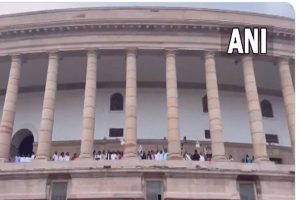 विपक्षी सदस्य दोनों सदनों की बैठक अपराह्न दो बजे तक के लिए स्थगित होने के बाद संसद के प्रथम तल के गलियारे में जमा हुए और ‘वी वांट जेपीसी’ के नारे लगाए। वे गलियारे से ही नीचे की ओर से बड़ा बैनर प्रदर्शित कर रहे थे जिस पर ‘वी वांट जेपीसी (हमें जेपीसी चाहिए)’ लिखा हुआ था। विपक्षी सदस्य संसद भवन के पहले मंजिल के गलियारे में रैलिंग के नीचे इस बैनर को हाथों से पकड़कर प्रदर्शित कर रहे थे।