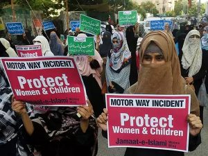 लाहौर। पाकिस्तान में बच्चों के सामने विदेशी महिला के साथ सामूहिक बलात्कार की घटना के बाद जबरदस्त विरोध प्रदर्शन हो रहे हैं। इस मामले की जांच कर रहे अधिकारी ने पीड़ित महिला को ही इसके लिए जिम्मेदार बता दिया। जिसके बाद से लोगों का गुस्सा और भड़क गया। बताया जा रहा है कि इस मामले में पुलिस ने अब तक 15 आरोपियों को गिरफ्तार किया है। लाहौर समेत पाकिस्तान के अधिकतर शहरों में बड़ी संख्या में महिलाएं इस घटना के खिलाफ विरोध प्रदर्शन कर रही हैं।