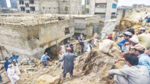 पाकिस्तान की पुलिस और बचाव अधिकारियों ने यह जानकारी दी। अधिकारियों ने बताया कि दीवार उस वक्त गिरी, जब मजदूर निर्माण स्थल पर सड़क किनारे लगाए गए अपने तंबू के अंदर बैठे थे। स्थानीय पुलिस अधिकारी मोहम्मद अकरम और आपातकालीन सेवा बचाव 1122 ने कहा कि गोलरा के पास बारिश की वजह से एक इमारत ढह गई और इस घटना में मारे गये लोगों के शव बरामद कर लिये गये। पाकिस्तान में 25 जून से मानसूनी बारिश हो रही है, जिससे मौसम संबंधी घटनाओं में अब तक कम से कम 112 लोगों की मौत हो चुकी है।
