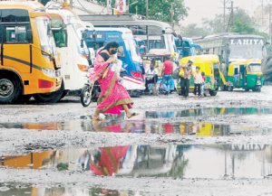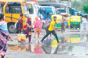 पूरा बस स्टैंड बड़े-बड़े गड्ढों और कीचड़ से सराबोर, यात्रियों के निकलने तक की जगह नहीं
