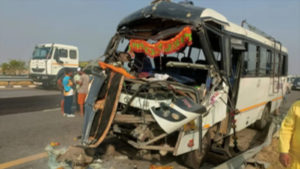 गाजीपुर। उत्तर प्रदेश के गाजीपुर में एक भीषण सड़क हादसा हो गया। अयोध्या से रामलला के दर्शन कर बिहार जा रही यात्रियों से भरी बस एक डंपर से जा टकराई। इस हादसे में बस चालक समेत चार लोगों की मौत हो गई और कई लोग घायल बताए जा रहे हैं। हादसे में घायल लोगों में से कुछ को इलाज के लिए गाजीपुर जिला अस्पताल और कुछ को मऊ भेजा गया है।