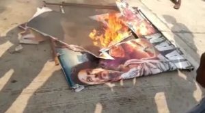बड़वानी। मध्यप्रदेश के बड़वानी में शाहरुख खान की फिल्म पठान के पोस्टर जलाने का मामला सामने आया है। विश्व हिन्दू परिषद और बजरंग दल के कार्यकर्ताओं ने सिनेमा हाल पहुंचकर शाहरुख खान की फिल्म पठान मूवी का विरोध किया। बजरंग दल के कार्यकर्ताओं ने सिनेमा हाल में लगे मूवी के पोस्टर फाड़ दिए और उनमें आग लगा दी। कार्यकर्ताओं ने चेतावनी भी दी के अगर थियेटर में मूवी लगी तो उग्र प्रदर्शन किया जायेगा।