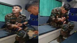 इस फोटो को देख कर कई लोगों के दिलों में सेना के जवानों के प्रति आदर और बढ़ गया है. इस फोटो को एक वीडियो (Viral Video) में से कैप्चर किया गया है. 45 सेकेंड्स के इस वीडियो को देख आपको भी भारतीय सेना (Indian Army) पर गर्व होगा. इस वीडियो में जिस तरह से जवान बच्चे की मदद करने में जुटे हुए हैं आप भी अपनी भावनाओं (Feelings) पर काबू नहीं कर पाएंगे. आप भी इस वायरल वीडियो को जरूर देखें…