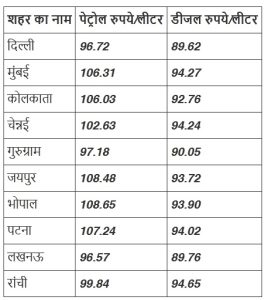 जानें प्रमुख शहरों में पेट्रोल-डीजल का ताजा भाव