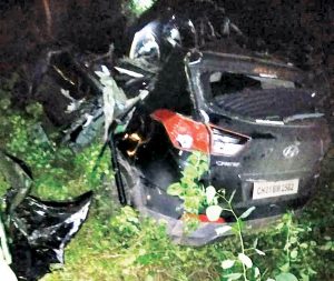 बडग़ोंदा पुलिस ने बताया कि महू-बडग़ोंदा रोड पर काले रंग की क्रेटा कार क्रमांक सीएच1-बीएम- 2582 अनियंत्रित होकर सडक़ से उतरते हुए पेड़ से जा टकराई। कार की गति इतनी तेज थी कि ड्राइवर साइड के पास वाला पूरा हिस्सा आगे से पीछे तक दब गया। उस तरफ दो युवतियां सवार थीं, जो उसमें फंस गईं। वहीं कार चला रहा युवक और उसके पीछे की तरफ बैठा एक अन्य युवक भी घायल हो गए। रात का अंधेरा होने के कारण उन्हें मदद नहीं मिल पाई। युवतियों ने मौके पर ही दम तोड़ दिया। युवतियों की पहचान अनन्या पिता कर्नल संजय जाधव निवासी तलावली चांदा इंदौर और परीना पिता राजेश निवासी महू के रूप में हुई है। घायल युवक कैप्टन अंशुल दलाल और कैप्टन वी. शर्मा दोनों निवासी महू मिलिट्री कॉलोनी बताए जा रहे हैं। बताया जा रहा है कि कार बडग़ोंदा से महू की ओर आ रही थी। संभावना जताई जा रही है कि ये लोग पिकनिक मनाने गए होंगे।