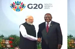 जोहनिसबर्ग. प्रधानमंत्री (PM) नरेंद्र मोदी (Narendra Modi) G20 शिखर सम्मेलन (Summit) में पहुंचे। वहां उन्होंने दक्षिण अफ्रीका (South Africa) के राष्ट्रपति के साथ बात भी की। बातचीत के वक्त दोनों नेता हंसते हुए दिखे। दुनिया की प्रमुख अर्थव्यवस्थाओं की इस बैठक से पहले अमेरिका के राष्ट्रपति ट्रंप और रूस के राष्ट्रपति पुतिन के शामिल नहीं हुए। फिलहाल ट्रंप के बहिष्कार के बावजूद शिखर वार्ता अपने एजेंडे के साथ आगे बढ़ रही है।