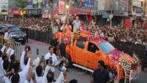 नई दिल्ली। प्रधानमंत्री नरेंद्र मोदी (Prime Minister Narendra Modi) ने शनिवार को गाजियाबाद में रोड शो (Road show in Ghaziabad) किया। आंबेडकर रोड पर मालीवाड़ा चौक से चौधरी मोड़ तक 1.4 किलोमीटर लंबे रूट पर हुए रोड शो में जबरदस्त भीड़ उमड़ी और पूरा रूट अबकी बार 400 पार व मोदी जी को जय श्रीराम के नारों से गूंज उठा। प्रधानमंत्री ने खुले वाहन में मुख्यमंत्री योगी आदित्यनाथ (Chief Minister Yogi Adityanath) के साथ लोगों का अभिवादन किया। रोड शो में पहुंचे लोगों ने 36 स्थानों पर फूलों की वर्षा कर उनका स्वागत किया। पारंपरिक परिधानों में सजकर पहुंचीं महिलाएं खुशी में झूम उठीं।