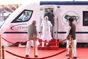 भोपाल। प्रधानमंत्री नरेंद्र मोदी ने आज प्रदेश को 2 और देश को 5 नई वंदे भारत एक्सप्रेस की सौगात दी। उन्होंने रानी कमलापति रेलवे स्टेशन पर वंदे भारत एक्सप्रेस को हरी झंडी दिखाकर रवाना किया। प्रधानमंत्री नरेंद्र मोदी आज सुबह भोपाल पहुंचे। राजा भोज विमानतल पर उनका स्वागत किया गया। जब पीएम आरकेएमपी स्टेशन पहुंचे तो वहां बच्चों ने उन्हें गिफ्ट दिए। पीएम से मिलने के लिए बड़ी संख्या में अलग-अलग स्कूलों के छात्र पहुंचे। एक स्टूडेंट्स ने पीएम मोदी की पेंटिंग बनाई है। देश की एकता और अनेकता का संदेश देती हुई पेंटिंग बनाई है। पीएम मोदी ने जिन पांच नई वंदे भारत एक्सप्रेस को हरी झंडी दिखाई उनमें भोपाल इंदौर वंदे भारत एक्सप्रेस, भोपाल जबलपुर वंदे भारत एक्सप्रेस, रांची-पटना वंदे भारत एक्सप्रेस, धारवाड़-बेंगलुरु वंदे भारत एक्सप्रेस और गोवा(मडगांव)-मुंबई वंदे भारत एक्सप्रेस शामिल है। भोपाल जबलपुर वंदे भारत एक्सप्रेस महाकौशल क्षेत्र को मध्य प्रदेश के मध्य क्षेत्र से जोड़ेगी। बेहतर कनेक्टिविटी से क्षेत्र के पर्यटन स्थलों को भी लाभ होगा। रांची-पटना वंदे भारत एक्सप्रेस झारखंड और बिहार के लिए पहली वंदे भारत रेलगाड़ी होगी। पटना और रांची के बीच कनेक्टिविटी को बढ़ाने वाली यह रेलगाड़ी पर्यटकों, छात्रों और व्यवसायियों के लिए वरदान साबित होगी। धारवाड़-बेंगलुरु वंदे भारत एक्सप्रेस कर्नाटक-धारवाड़ और हुबली में महत्वपूर्ण शहरों को बेंगलुरु से जोड़ेगी। गोवा (मडगांव)-मुंबई वंदे भारत एक्सप्रेस गोवा की पहली वंदे भारत एक्सप्रेस होगी। यह मुंबई के छत्रपति शिवाजी महाराज टर्मिनस और गोवा के मडगांव स्टेशन के बीच चलेगी।