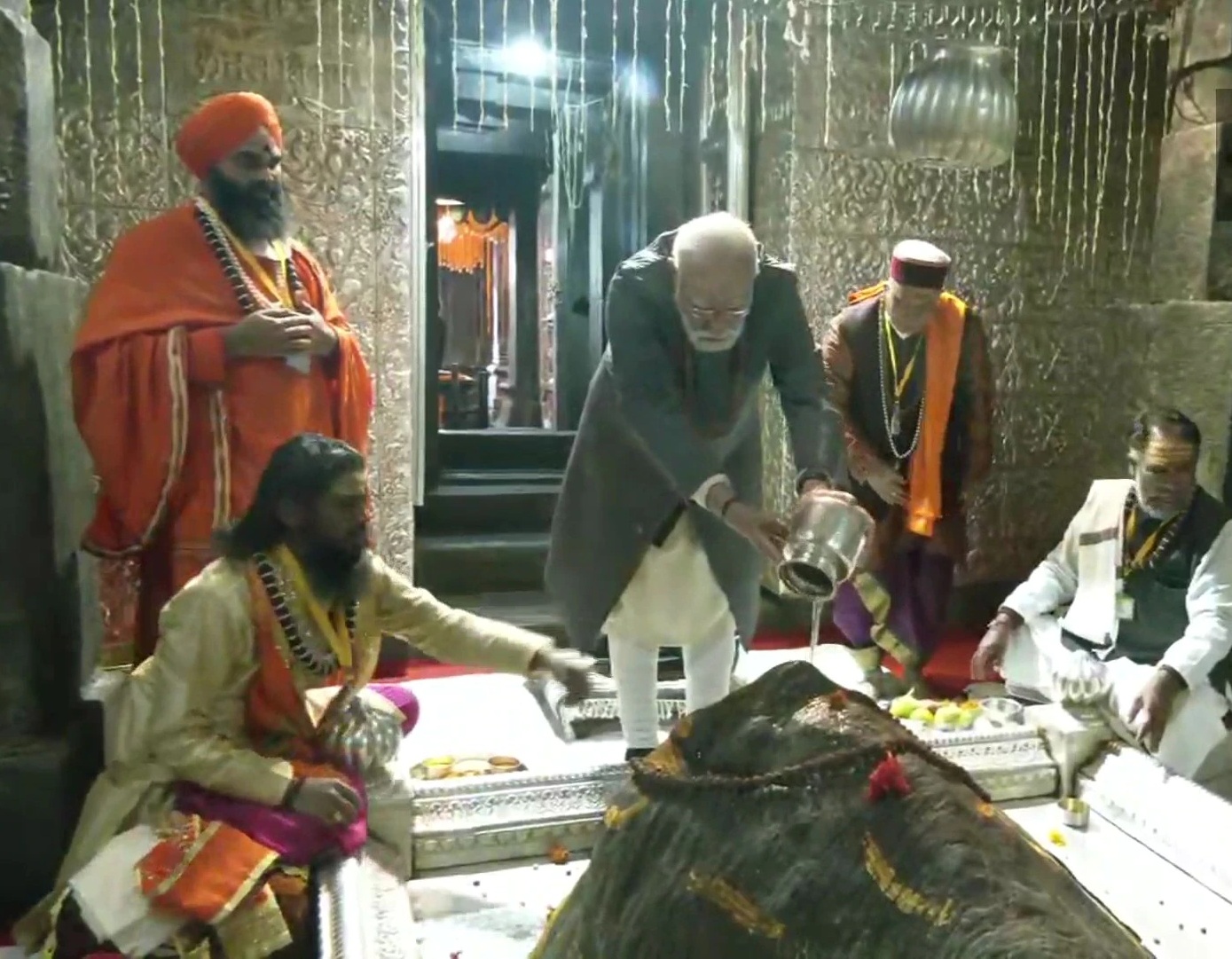 देहरादून । प्रधानमंत्री नरेन्द्र मोदी (Prime Minister Narendra Modi) ने संपूर्ण विधि विधान से आज बाबा केदारनाथ (Baba Kedarnath) की पूजा-अर्चना और रुद्राभिषेक (Rudrabhishek) किया । इसके पीएम मोदी मंदिर के बाहर आ गए हैं। उनके साथ उत्तराखंड के राज्यपाल (Governor of Uttarakhand) रिटायर्ड लेफ्टिनेंट जनरल गुरमीत सिंह (Retired Lieutenant General Gurmeet Singh) और मुख्यमंत्री पुष्कर सिंह धामी (Chief Minister Pushkar Singh Dhami) भी उनके साथ मौजूद हैं । वे अब आदि गुरु शंकराचार्य की 12 फीट लंबी और 35 टन वजन वाली प्रतिमा का अनावरण कर रहे हैं। साथ ही 400 करोड़ रुपये से अधिक के कार्यों का लोकार्पण और शिलान्यास भी करने जा रहे हैं ।