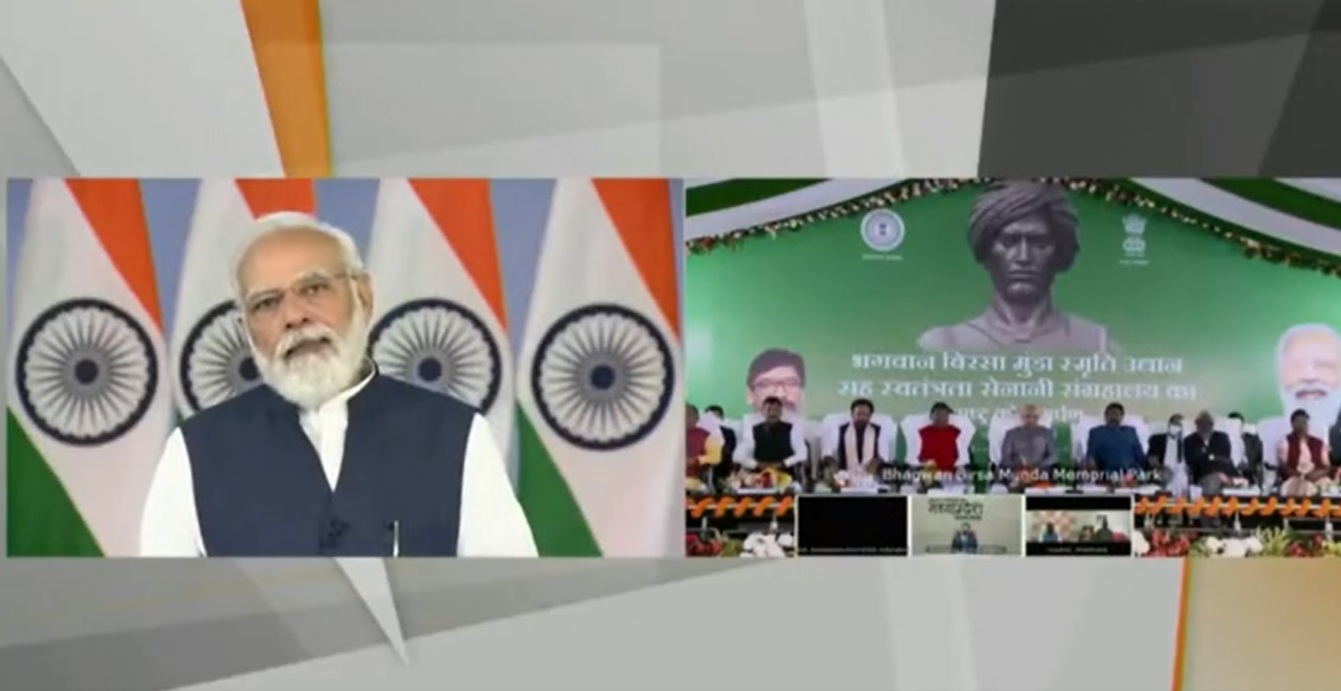 प्रधानमंत्री मोदी ने कहा, “भगवान बिरसा मुंडा ने अस्तित्व, अस्मिता और आत्मनिर्भरता का सपना देखा था। देश भी इसी संकल्प को लेकर आगे बढ़ रहा।”