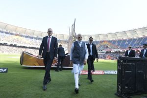 इससे पहले अहमदाबाद के नरेंद्र मोदी स्टेडियम पहुंचे प्रधानमंत्री नरेंद्र मोदी।राज्यपाल आचार्य देवव्रत, मुख्यमंत्री भूपेंद्र पटेल, राज्य के गृह मंत्री हर्ष सांघवी, बीसीसीआई अध्यक्ष रोजर बिन्नी और बीसीसीआई सचिव जय शाह ने उनका स्वागत किया।