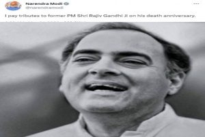 नई दिल्ली । प्रधानमंत्री नरेंद्र मोदी (PM Narendra Modi) ने रविवार को पूर्व प्रधानमंत्री (Former PM) भारत रत्न राजीव गांधी (Bharat Ratna Rajiv Gandhi) को उनकी 32वीं पुण्यतिथि पर (On the 32nd Death Anniversary) जापान से ट्वीट कर श्रद्धांजलि दी (Tweeted Tribute from Japan) । जी7 शिखर सम्मेलन में भाग लेने के लिए जापान की यात्रा पर गए मोदी ने एक ट्वीट में कहा, मैं पूर्व प्रधानमंत्री राजीव गांधी जी को उनकी पुण्यतिथि पर श्रद्धांजलि अर्पित करता हूं ।