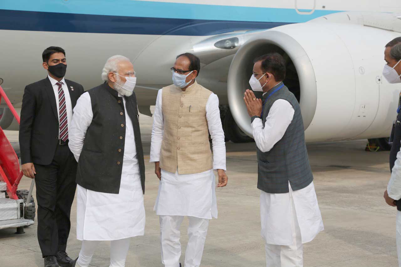 भोपाल। प्रधानमंत्री नरेन्द्र मोदी (Prime Minister Narendra Modi) शुक्रवार को अल्प प्रवास पर भारतीय वायु सेना के विमान से दोपहर 2 बजे खजुराहो विमानतल पहुँचे और वायुसेना के हेलीकॉप्टर से उत्तर प्रदेश के महोबा के लिए रवाना हुए।