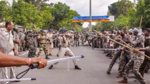 हंगामा करने के कारण धरना करने वाले पुलिस और बचाव के लिए आए पुलिसकर्मियों के बीच मारपीट हुई. जिला पुलिस और आईआरबी की पुलिसकर्मियों के साथ मारपीट के दौरान कई पुलिसकर्मी घायल हो गए. साथ ही चार महिला सहित 11 सहायक पुलिसकर्मियों को गंभीर चोटें आई हैं और तीन के सिर भी फट गए. सभी घायलों को इलाज के लिए अस्पताल भेजा गया है.