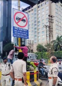 नो एंट्री में आए 23 भारी वाहनों के विरुद्ध, पुलिस ने की चालानी कार्यवाही; प्रतिबंधित मार्गों पर लगवाए जा रहे है साइन बोर्ड