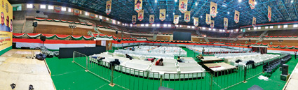 मुख्यमंत्री श्री चौहान ने 10 नंबर स्थित राग दरबारी परिसर में भोपाल जिले के ईटखेड़ी गाँव के समर्थन स्व-सहायता समूह की महिलाओं से रसीद कटवाकर तिरंगा लिया। मुख्यमंत्री श्री चौहान ने समूह की सुश्री शिखा मीना, ज्योति विश्वकर्मा, कौसर जहाँ, मंजू गड़वाल, राधा मीना और कृष्णा विश्वकर्मा से तिरंगा निर्माण के लिए जारी गतिविधियों के संबंध में चर्चा की।