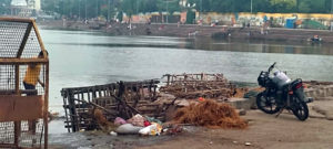 - नदी में विसर्जन के बाद बड़ी मात्रा में निकल रहा है पीओपी का मलबा