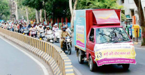 डाक विभाग इंदौर नगर संभाग ने पोस्टमास्टर जनरल प्रीति अग्रवाल के मार्गदर्शन में इस रैली का आयोजन किया। सभी पोस्टमैन को इससे पहले मतदाता जागरूकता बैज लगाए गए और फिर हरी झंडी दिखाकर रैली को रवाना किया गया। इस दौरान अग्रवाल ने कहा कि वे सभी अपने मताधिकार का इस्तेमाल करने के साथ ही अपने आसपास के लोगों को इसके लिए प्रेरित करें। विभाग के सभी पोस्टमैन भी अपने वितरण क्षेत्र में सभी लोगों को मतदान के लिए जागरूक करने का काम करेंगे, ताकि चुनाव के इस महापर्व को भी हर मतदाता अपनी नैतिक जिम्मेदारी का निर्वहन समझते हुए मतदान करे। इस दौरान प्रवर अधीक्षक डाकघर शिवांसु कुमार के साथ डाक विभाग के समस्त अधिकारी एवं कर्मचारी उपस्थित थे। रैली दो वाहनों पर जीपीओ से शुरू हुई, जो छावनी चौराहा, पीसी सेठी, शिवाजी वाटिका, सीजीओ कॉम्प्लेक्स, रेसीडेंसी होते हुए फिर जीपीओ लौटी। रैली में शामिल सभी दोपहिया वाहन चालकों ने यातायात नियमों का पूरा ध्यान रखा और सभी अपने वाहन पर हेलमेट पहनकर शामिल हुए।