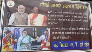 कोलकाता। पश्चिम बंगाल में भाजपा और तृणमूल कांग्रेस के बीच की तनातनी अब पोस्टर वार में तब्दील होती दिखाई दे रही है। राज्य में BJP द्वारा CM ममता बनर्जी को आदिवासी समुदाय विरोधी कहने वाले पोस्टर लगाए जा रहे हैं। पोस्टर में NDA की राष्ट्रपति पद की उम्मीदवार द्रौपदी मुर्मू और PM को भी दिखाया गया है। TMC ने राष्ट्रपति चुनाव में विपक्ष के उम्मीदवार यशवंत सिन्हा का समर्थन किया है।