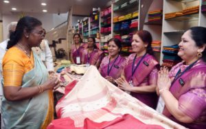 इंदौर। राष्ट्रपति द्रौपदी मुर्मू (President Draupadi Murmu) दो दिवसीय दौरे पर इंदौर हैं। राष्ट्रपति एयरपोर्ट से सीधे मृगनयनी एम्पोरियम (Mriganayani Emporium) पहुंचीं, जहां कलाकारों से मुलाकात की। मृगनयनी के आर्टिस्ट ने उनको पेंटिंग गिफ्ट की। इस दौरान मुर्मू ने 33 हजार रुपए की दो साड़ियां भी खरीदी। एयरपोर्ट पर राज्यपाल मंगूभाई पटेल और CM डॉ मोहन ने राष्ट्रपति का स्वागत किया।