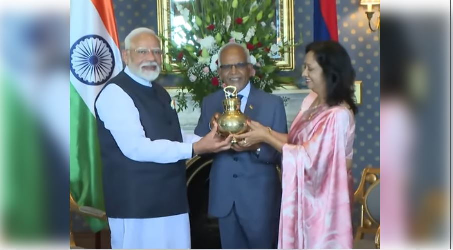 • मॉरीशस के राष्ट्रपति धरम गोखूल को महाकुंभ का पवित्र गंगा जल भेंट किया प्रधानमंत्री नरेंद्र मोदी ने