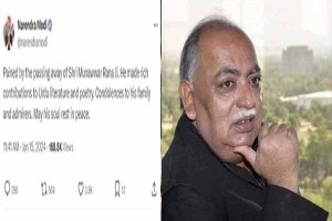 प्रधानमंत्री मोदी ने उर्दू साहित्य और शायरी में मुनव्वर राणा के समृद्ध योगदान को याद कर, उनके निधन पर दुख व्यक्त करते हुए एक्स पर पोस्ट कर कहा, मुनव्वर राणा के निधन से दुख हुआ। उन्होंने उर्दू साहित्य और कविता में समृद्ध योगदान दिया। उनके परिवार और प्रशंसकों के प्रति संवेदनाएं। उनकी आत्मा को शांति मिले।