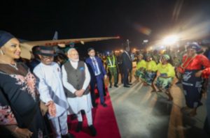 नई दिल्ली । पहली बार नाइजीरिया पहुंचे (Reached Nigeria for the first time) प्रधानमंत्री नरेंद्र मोदी (Prime Minister Narendra Modi) का गर्मजोशी से स्वागत हुआ (Got Warm Welcome) । यह यात्रा उनके तीन देशों के दौरे का हिस्सा है, जिसमें वे ब्राजील और गुयाना भी जाएंगे।