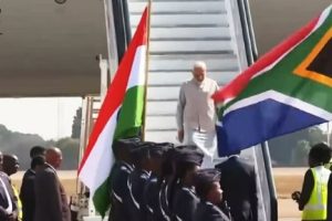जोहान्सबर्ग के सैंडटन सन होटल में ‘ढोल’ और अन्य वाद्य यंत्रों के साथ भारतीय समुदाय के सदस्य पीएम मोदी के आगमन का इंतजार कर रहे हैं। भारतीय समुदाय की सदस्य और दक्षिण अफ्रीकी प्रसारण निगम की मीडियाकर्मी याशिका सिंह ने पीएम मोदी के स्वागत के लिए ‘राखी’ थाली तैयार की है। उन्होंने कहा, पहली राखी भगवान गणेश के आकार की है। हम प्रार्थना करते हैं कि पीएम मोदी के काम में आने वाली सभी बाधाएं दूर हों। दूसरी राखी कर्म अवतार के आकार में है… हम उन्हें याद दिलाना चाहेंगे कि वह अभी भी हमारे भाई हैं और ये उनके लिए सुरक्षा की राखियां हैं।’