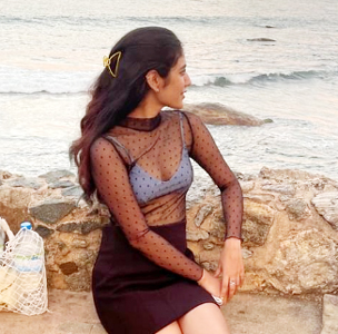 इस तस्वीर में प्रिया प्रकाश वारियर (Priya Prakash Varrier) समंदर किनारे बैठे नजर आईं. तस्वीर के पीछे का नजारा बेहद खूबसूरत है जिसमें सनसेट भी साफ नजर आया है.