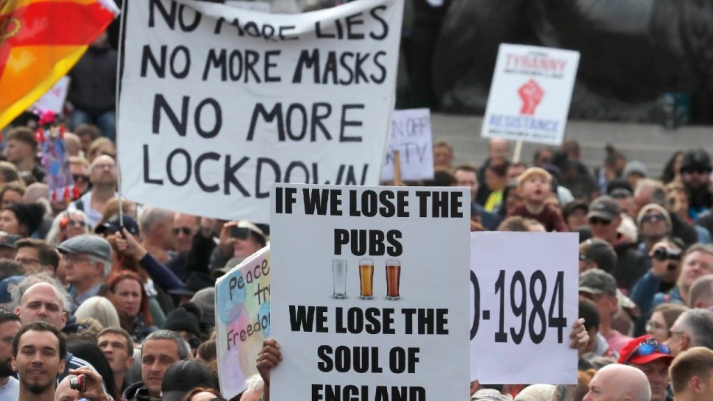 लंदन में हो रहा लॉकडाउन का विरोध, एक साथ 104 प्रदर्शनकारी गिरफ्तार