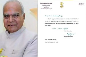 चंडीगढ़ । पंजाब के राज्यपाल और चंडीगढ़ के प्रशासक (Punjab Governor and Chandigadh Administrator) बनवारीलाल पुरोहित (Banwarilal Purohit) ने “व्यक्तिगत कारणों से (Due to Personal Reasons) इस्तीफा दे दिया (Resigned) । कुछ समय से राज्यपाल बनवारीलाल पुरोहित और मुख्यमंत्री भगवंत मान के बीच विवाद चल रहा था, राज्यपाल ने आप सरकार पर संविधान के खिलाफ काम करने और उनके पत्रों का जवाब नहीं देने का आरोप लगाया था।