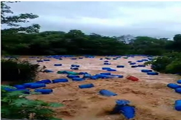 • हजारों प्लास्टिक के ड्रम भारी बारिश के चलते नाले और नदी के पानी में बह गए