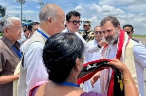 कांग्रेस नेता राहुल गांधी गुरुवार, 29 जून को इंफाल पहुंचे हैं. एएनआई के अनुसार, राहुल गांधी दो दिनों तक हिंसाग्रस्त राज्य का दौरा करेंगे और अपनी यात्रा के दौरान राहत शिविरों में भी जाएंगे. इसके साथ ही उनका इंफाल और चुराचांदपुर में सिविल सोसायटी के प्रतिनिधियों से भी मिलने का कार्यक्रम है.