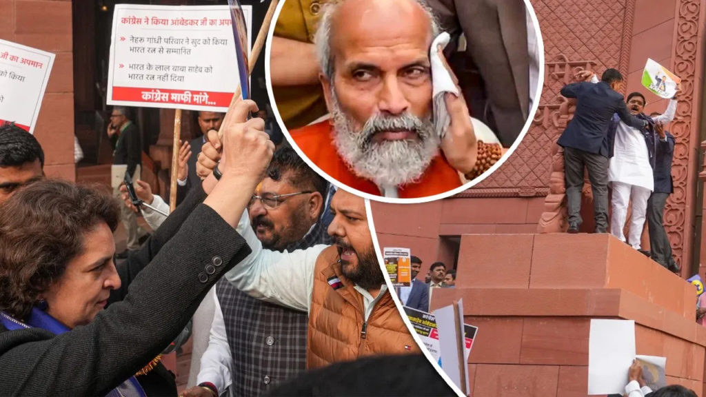 नई दिल्ली। लोकसभा नेता प्रतिपक्ष राहुल गांधी (Rahul Gandhi) और कांग्रेस सांसद प्रियंका गांधी वाड्रा (Priyanka Gandhi Vadra) के नेतृत्व में इंडिया गठबंधन के सांसदों ने संसद परिसर में बाबासाहेब अंबेडकर प्रतिमा पर विरोध प्रदर्शन किया। वहीं, संसद परिसर में बीजेपी सांसद भी विपक्षी सांसदों के खिलाफ प्रदर्शन किया। इस बीच बीजेपी ने आरोप लगाया है कि लोकसभा में नेता प्रतिपक्ष राहुल गांधी ने उसके दो सांसदों प्रताप चंद्र सारंगी और मुकेश राजपूत को धक्का दे दिया, जिसकी वजह से वह गिर गए और उन्हें चोट लग गई।